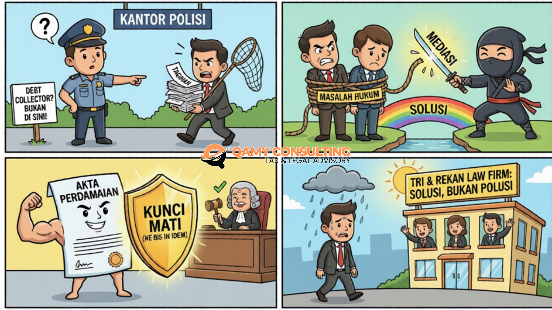 Sengketa bisnis tidak harus berakhir dengan drama atau ‘perang dingin’. Di TRI & REKAN, kami membantu Anda menemukan ‘jalan ninja’ yang cerdas, tenang, dan berkelas. Karena bagi kami, hukum seharusnya hadir sebagai solusi yang melegakan, bukan polusi yang bikin pusing tujuh keliling. Mari berdiskusi dan temukan titik temunya bersama kami.